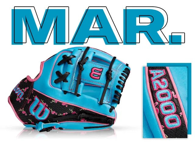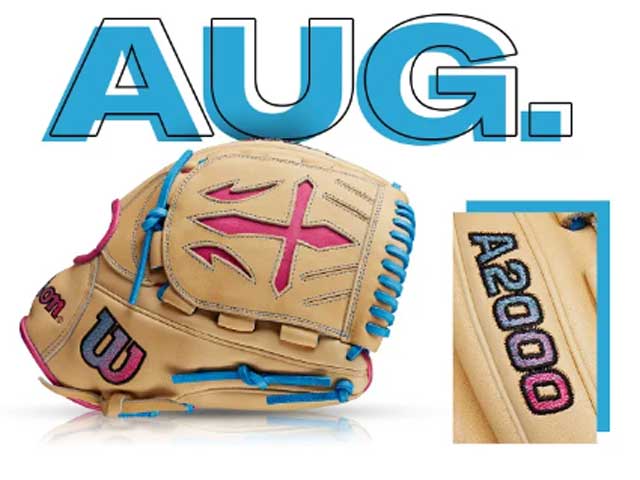Each month, Wilson unveils a new A2K or A2000 Glove of the Month - a unique limited-edition Pro Stock ball glove available only in-store from select dealers. Past Glove of the Month gloves have included player customs, one-of-a kind models and fan-designed contest winners. A portion of the proceeds go to Pitch in for Baseball, a longtime Wilson charity partner. Contact us for In Store Availability!