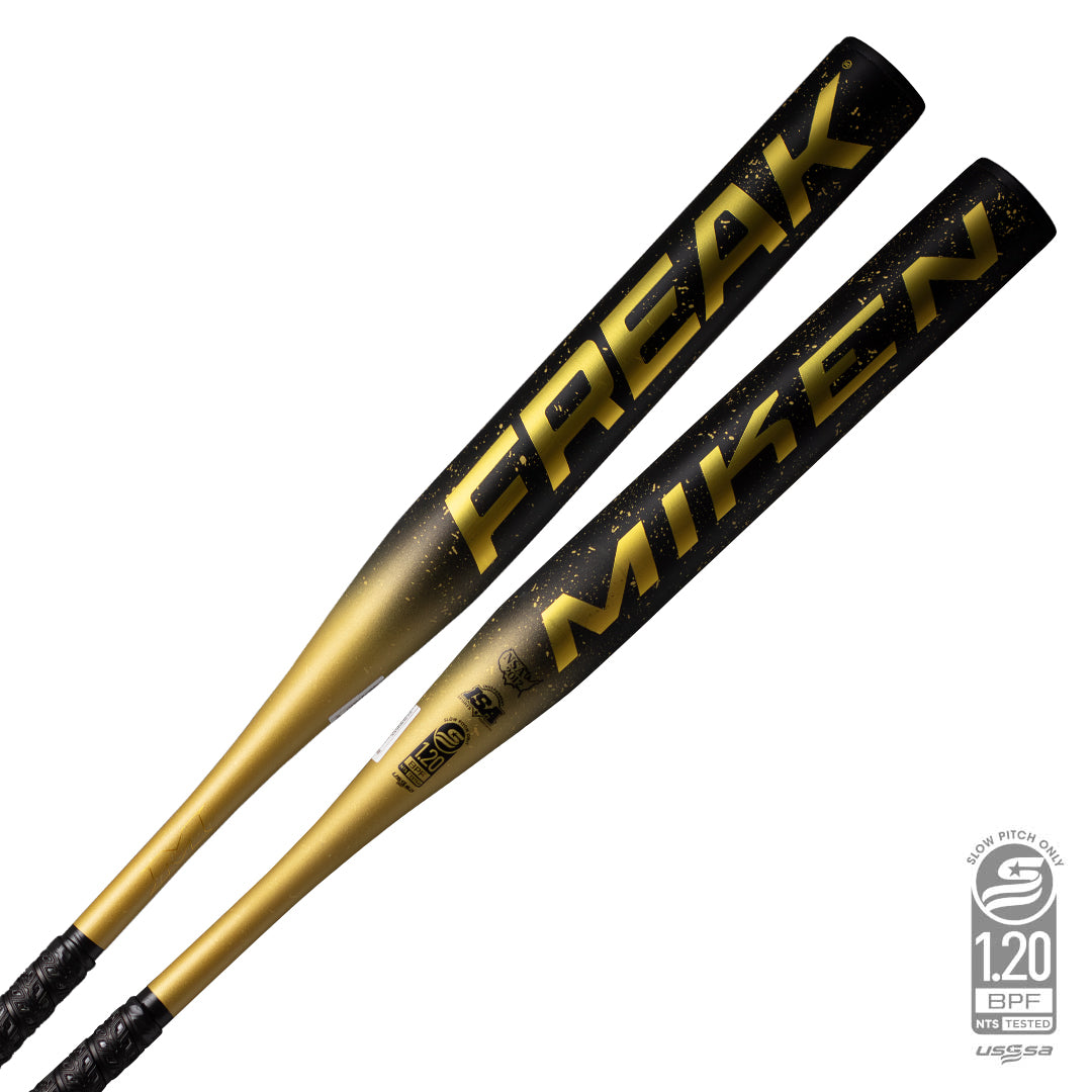 Crush with confidence using the 2025 Miken Freak Gold Maxload USSSA Slowpitch Bat.