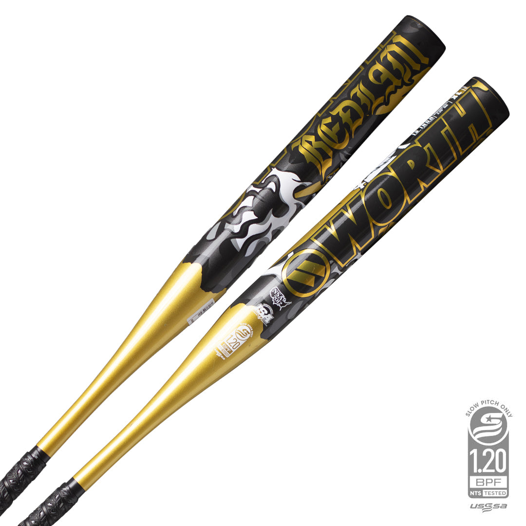 Embrace the chaos with the 2025 Worth Bedlam Gold XL 13-Inch USSSA Slowpitch Bat.